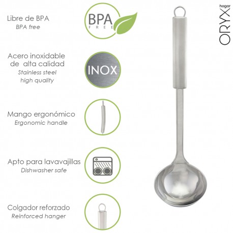 - Descubra toda la gama de utensilios de acero inoxidable: cuchara servir, cucharon servir, espumadera, rasera, varillas de batir, cuchara para helados, espatula para tartas, varilla batidora, todos ellos realizado en acero inoxidable.